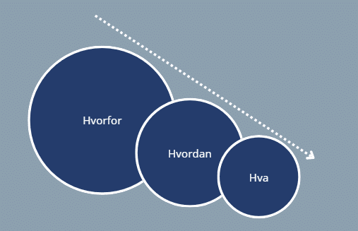 Det ligger litt i vår menneskelige natur å se «Hva» først. Og deretter finne ut av «Hvordan» og til slutt «Hvorfor». Det er lett å se seg blind på hva som eksisterer i dag, og hvordan man har gjort det før. Hva med å starte i andre enden og tenke slik: